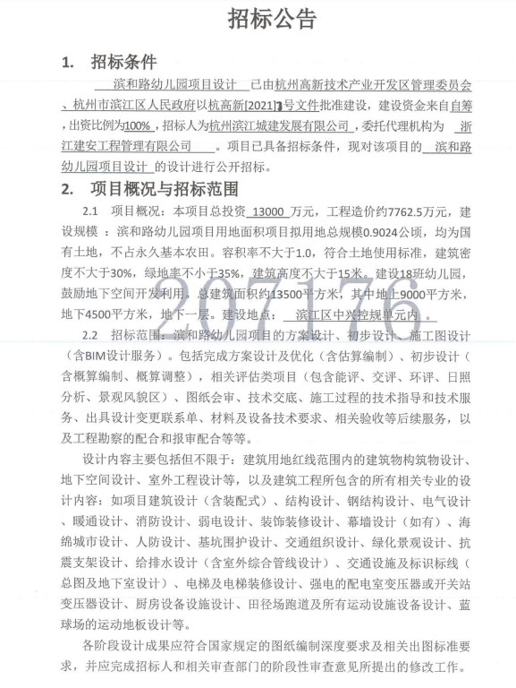 濱和路幼兒園設(shè)計招標(biāo)公告