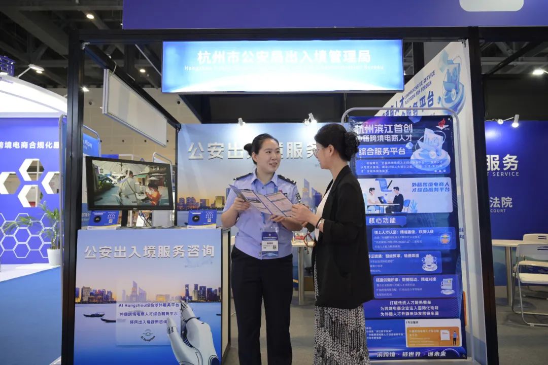 7月10日,杭州大會展中心內(nèi)人頭攢動,全球跨境電商交易博覽會暨“外貿(mào)優(yōu)品 科技出海”活動在此隆重開幕。在熱鬧非凡的展館中,一個展區(qū)格外引人注目,那就是“杭州外籍跨境電商人才綜合服務(wù)平臺”展區(qū)。展區(qū)內(nèi),濱江公安民警正熱情地向參觀者介紹著平臺的各項(xiàng)功能和使用方法,現(xiàn)場咨詢的人絡(luò)繹不絕。